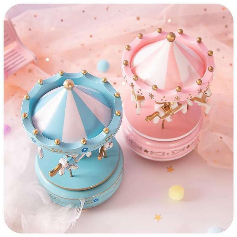 3 cores Wind Up Musical Carrossel com Cavalo De Madeira Brinquedo de Presente de Aniversário de Casamento Festas de Natal Crianças Caixa de Melodia K S6Q8